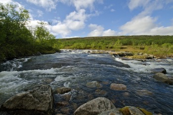 The Belousikha River is not a big one. Its beginning is lost somewhere in the widespread lake system. It’s only 12 km long its downstream where it becomes a speedy and transparent for giving back its waters to the Voronya mother. The Belousikha waters are like crystal, being the most clear among all other rivers. Apart from Salmon one can catch River Bull Trout, Sea Bull Trout, Grayling. The Arctic Loach can be caught in the lakes, and in upstream lake creeks – White Fish can be met. The River is very picturesque and multifaceted – changing from the rifts with sudden escape to the canyon, and running between the knolls as a silver snake. Upwards from the camp the river flows via the mountain tundra and has canyons, downriver the camp it runs into the forests. There is plenty of amazing lakes around.