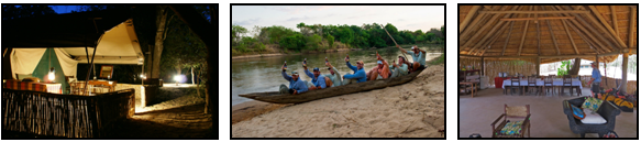 * Лагерь на реке Рухуджи строится каждый сезон. В лагере включает стандартные палатки Safari, все с отдельными ванными комнатами, двойной конфигурации. Общая зона расположена в тени прибрежного леса, хотя часто гости запросто едят на красивом песчаном берегу перед лагерем.